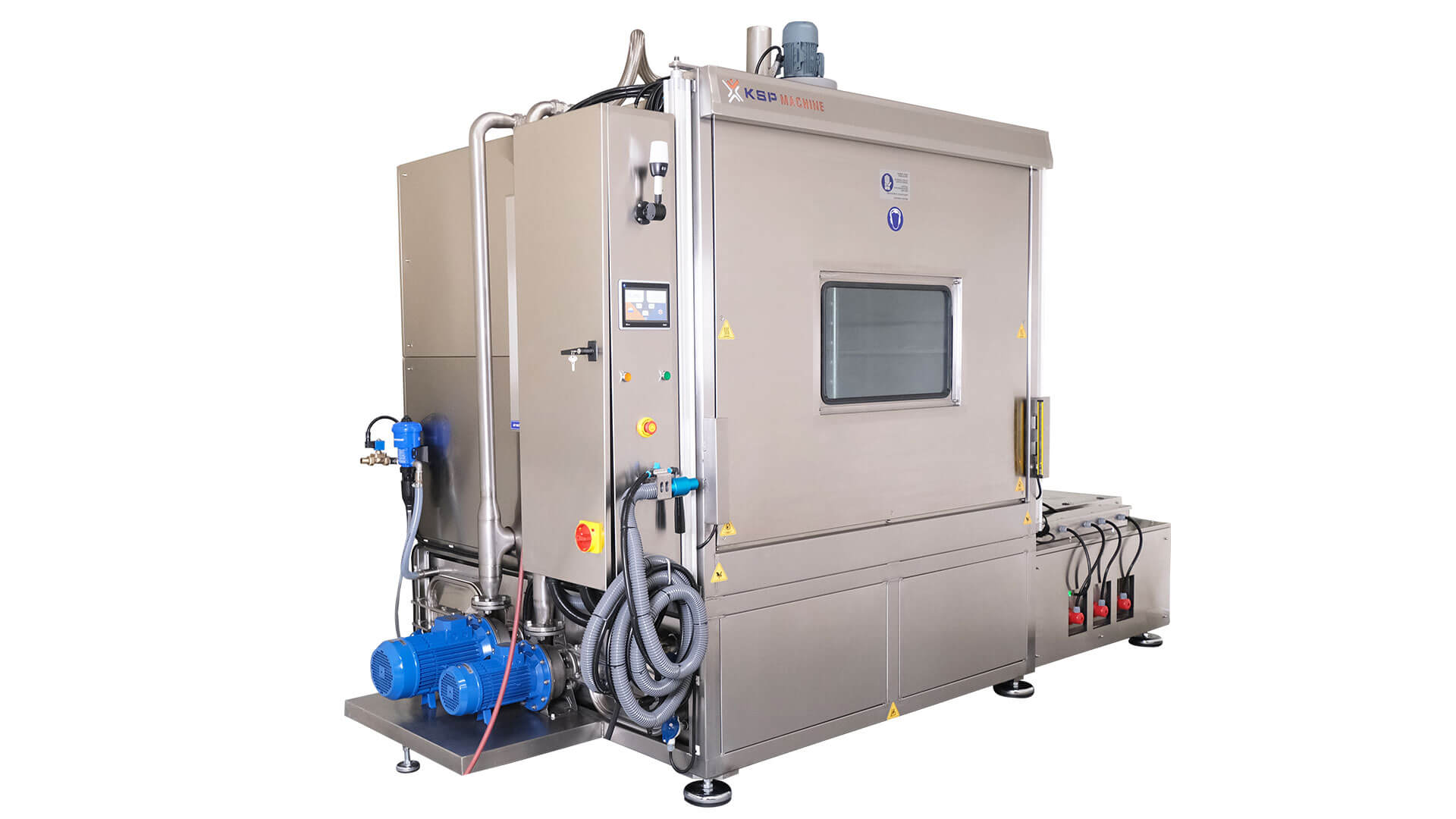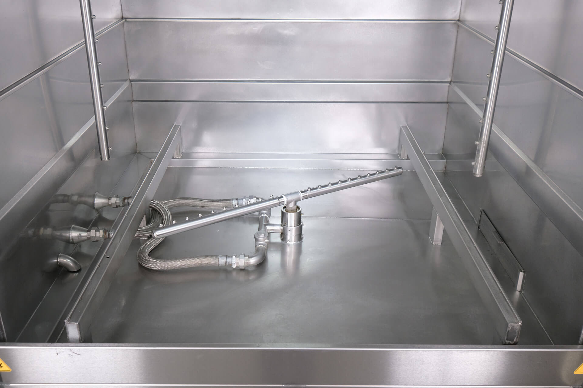 Proses süresince sıcak su, makineye entegre borular üzerindeki püskürtücü nozullar aracılığıyla parçaların üzerine püskürtülür. Purge XLarge Serisi, işçilik, su, deterjan, elektrik ve zamandan tasarruf sağlamak amacıyla özel olarak tasarlanmıştır.