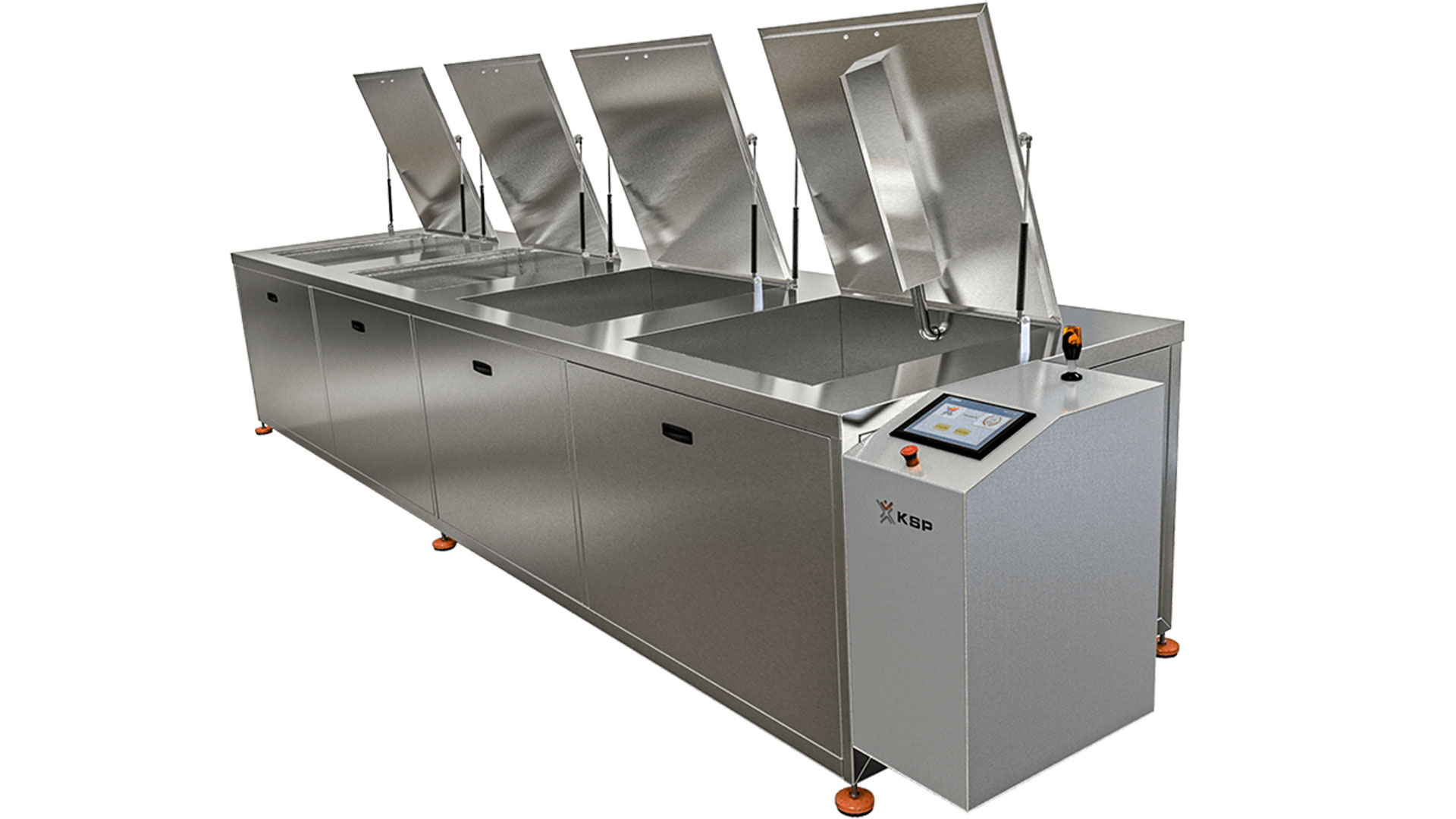 KSP Makine, parça sayısının ve hacminin büyük olduğu, kirlilik yoğunluğu yüksek proseslerde hassas ve detaylı yıkama çözümleri sunmak üzere geliştirdiği çok kazanlı yıkama sistemleri ile geniş bir standart ürün yelpazesine sahiptir. İki, üç, dört veya beş kazanlı yapısıyla farklı tonajlarda ve hacimlerde üretilen bu sistemler, endüstriyel parça temizliğinde esnek ve yüksek verimlilik sağlayan çözümler sunar.