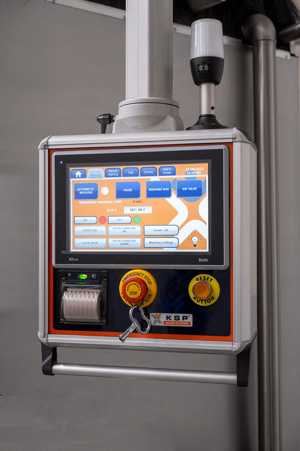 Bağımsız yıkama ve kurutma sistemleri sayesinde aynı anda iki farklı filtrenin temizlenmesi mümkündür. %99’un üzerinde temizlik performansı sunan sistem, işlem öncesi ve sonrası yapılan karşı basınç testleri ile sonuçları raporlayarak güvenilirliği kanıtlar. Tüm fonksiyonlar ve güvenlik önlemleri, PLC kontrol sistemi ve güvenlik röleleri ile yönetilmektedir. Dokunmatik ekran üzerinden önceden tanımlı programlar sayesinde kullanıcı dostu bir deneyim sunar.