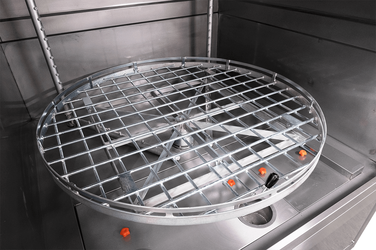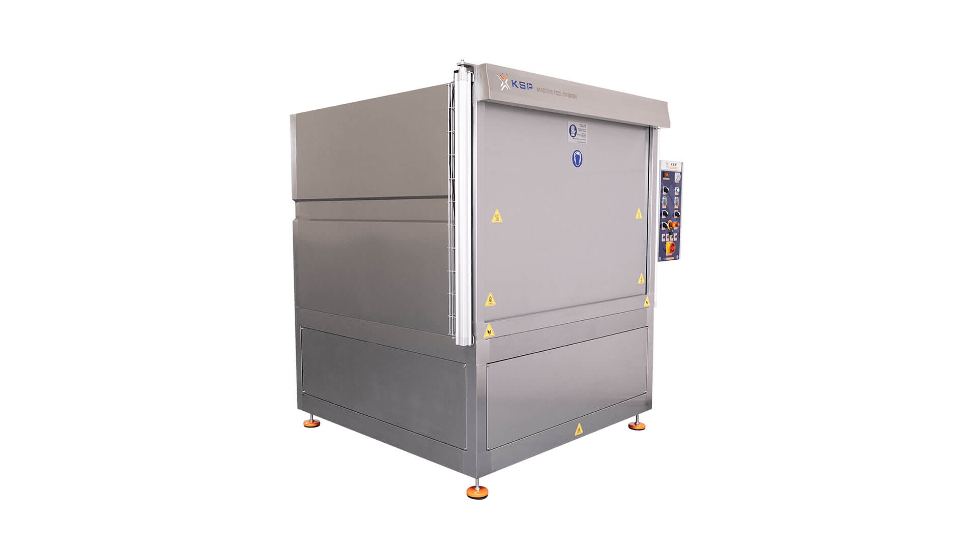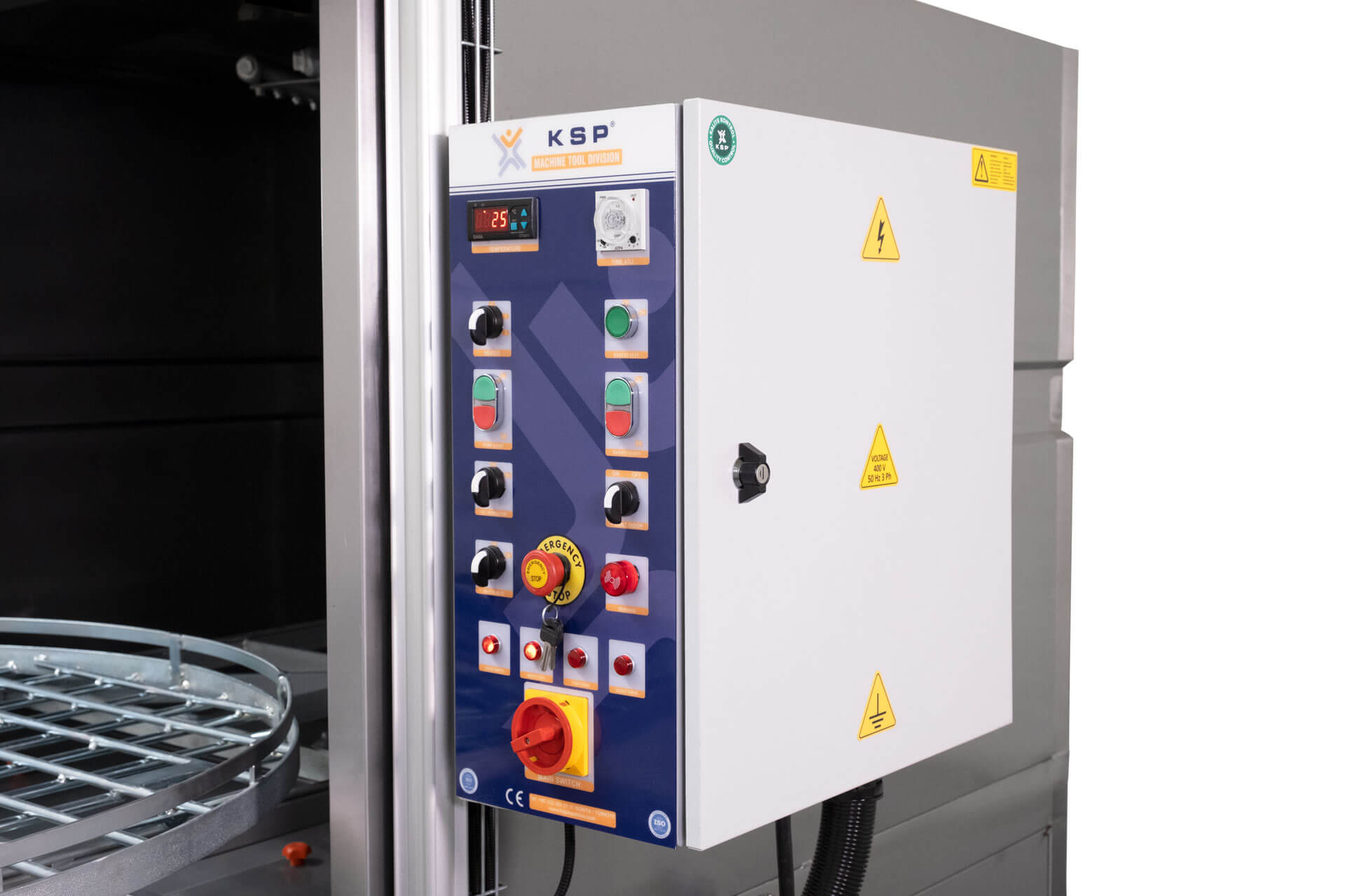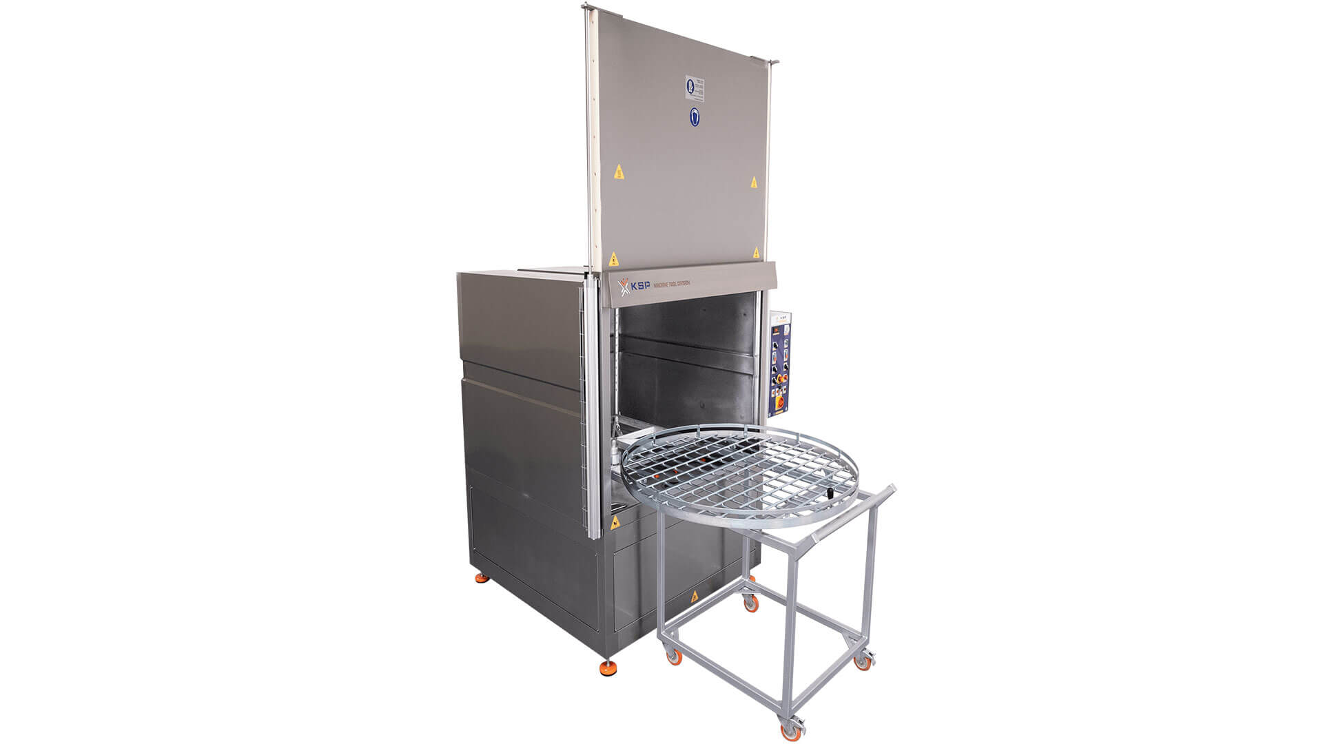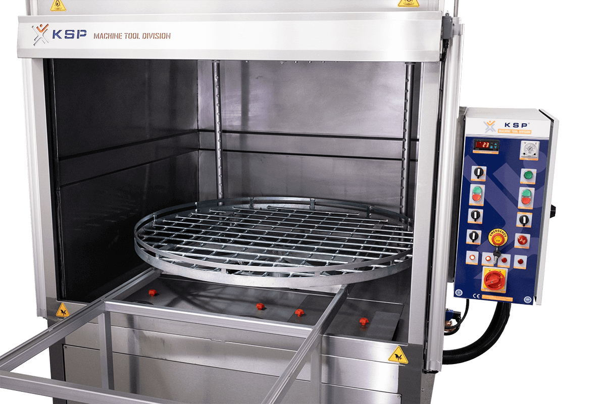 KSP Makine tarafından geliştirilen Döner Sepetli Yıkama Sistemi, küçük ve orta boy parçaların yüksek kaliteli, hızlı ve ekonomik şekilde temizlenmesi için tasarlanmıştır. Parçalar döner sepet üzerine yerleştirilir ve kapalı bir kabin içerisinde yüksek basınçlı deterjanlı sıcak su ile yıkanır. Yıkama süresince makineye entegre edilmiş püskürtme nozulları, suyu doğrudan parçaların üzerine yönlendirerek tüm yüzeylerde etkili temizlik sağlar.